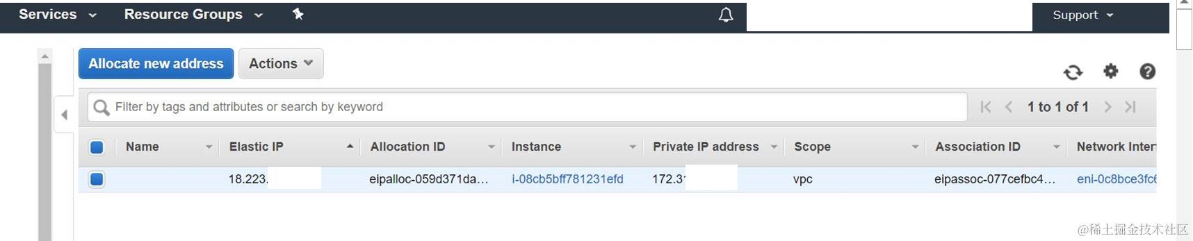 Elastic IP是持久化的,每次重启AWS实例后不会发生变化。从AWS的elastic IP池子里申请。