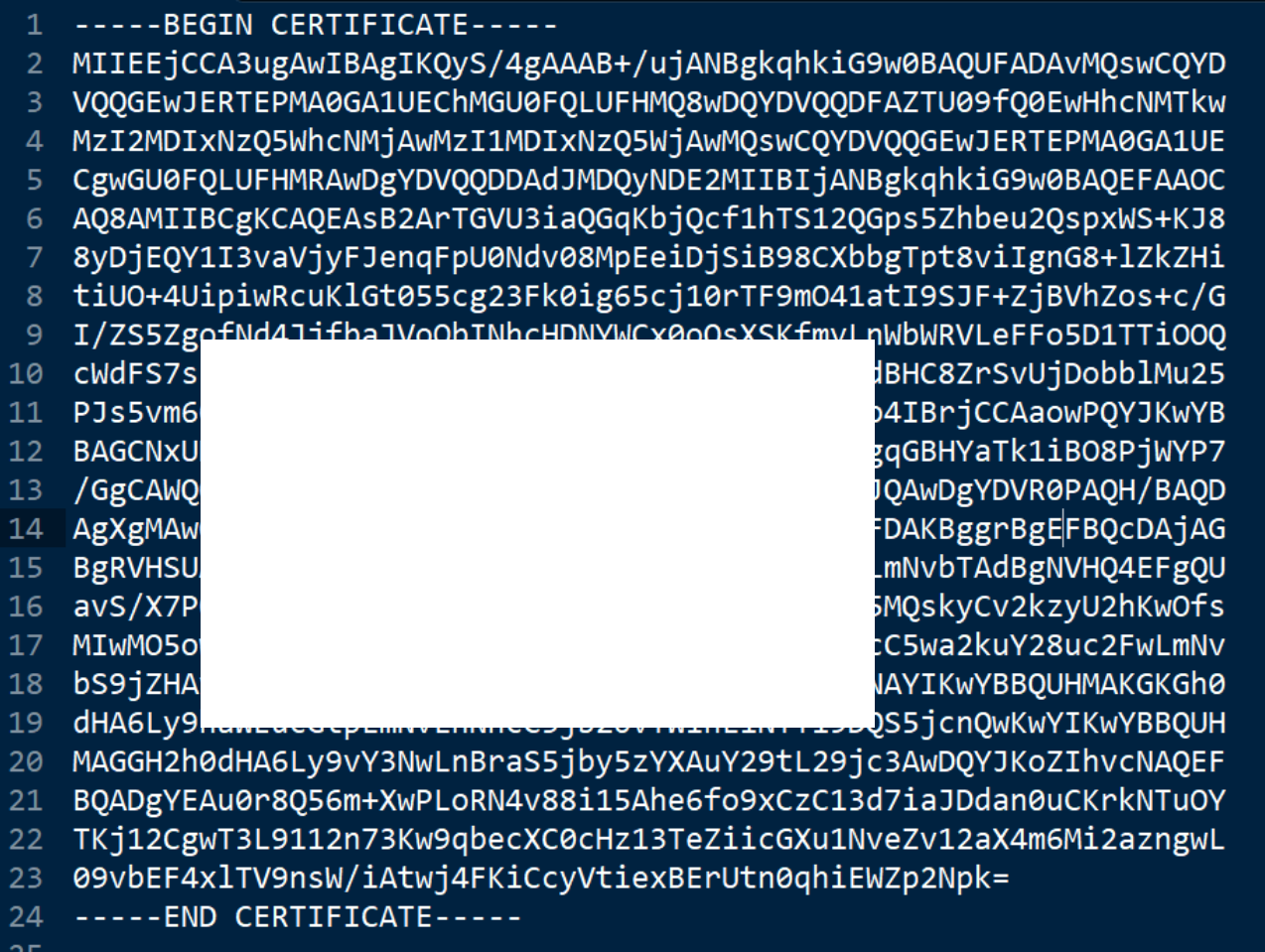 用记事本打开这个base64 encode的509证书: