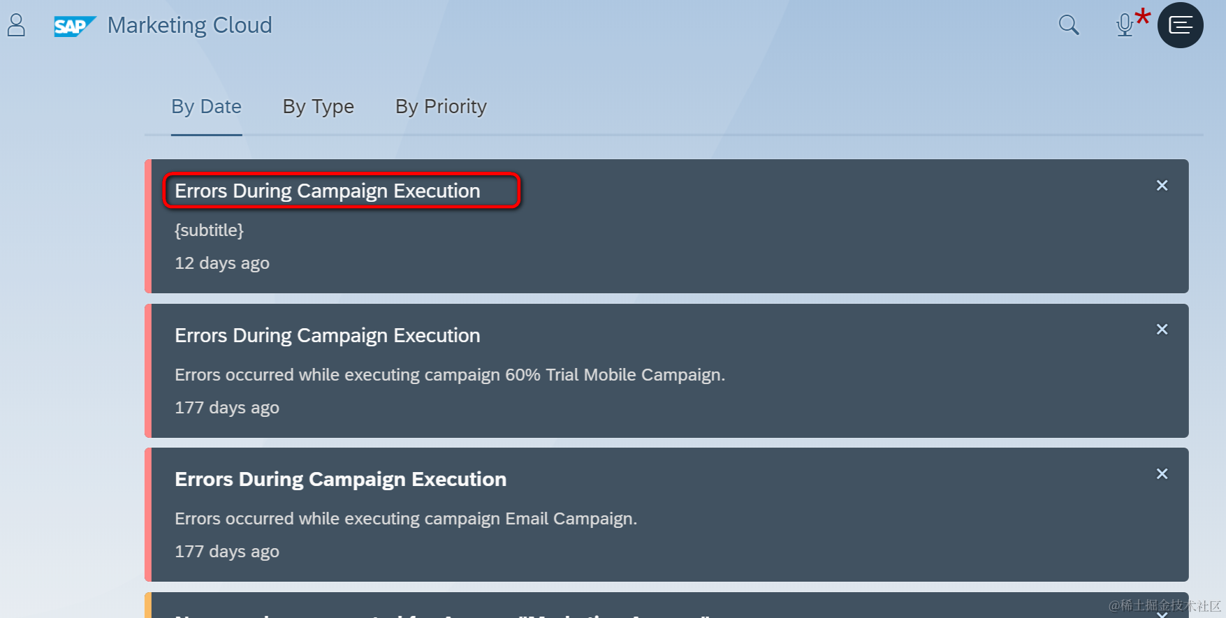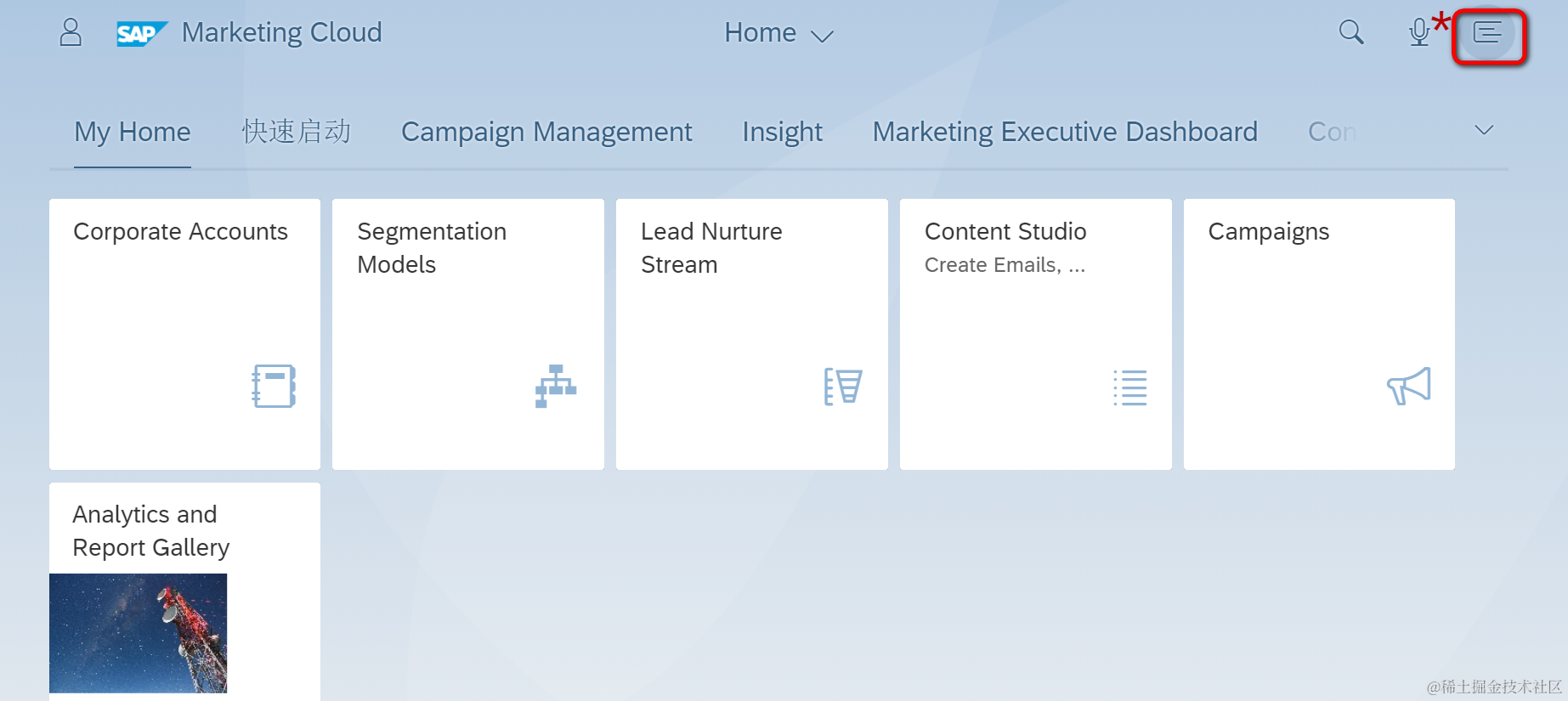 在Marketing Cloud界面的右上角,点击这个icon可以进入notification界面: