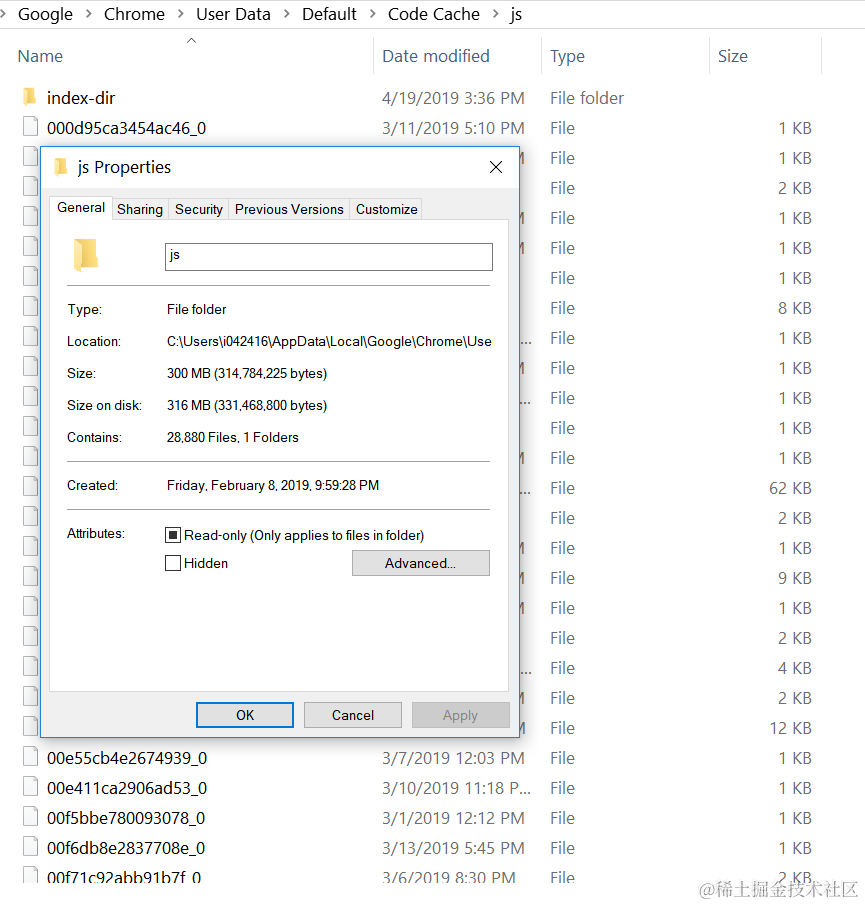windows10大瘦身 - Chrome文件夹下可以删除的临时js文件 已注销 2021-04-25 1,032 阅读1分钟 最近我的固态硬盘空间又不够了,所以开始windows10系统瘦身。 我在Chrome的这个文件夹下面发现了大量的临时js文件: C:\Users\i042416\AppData\Local\Google\Chrome\User Data\Default\Code Cache\js 将近3万个小的js文件,总共300MB 可以安全删除,释放300MB空间。 要获取更多Jerry的原创文章,请关注公众号"汪子熙":