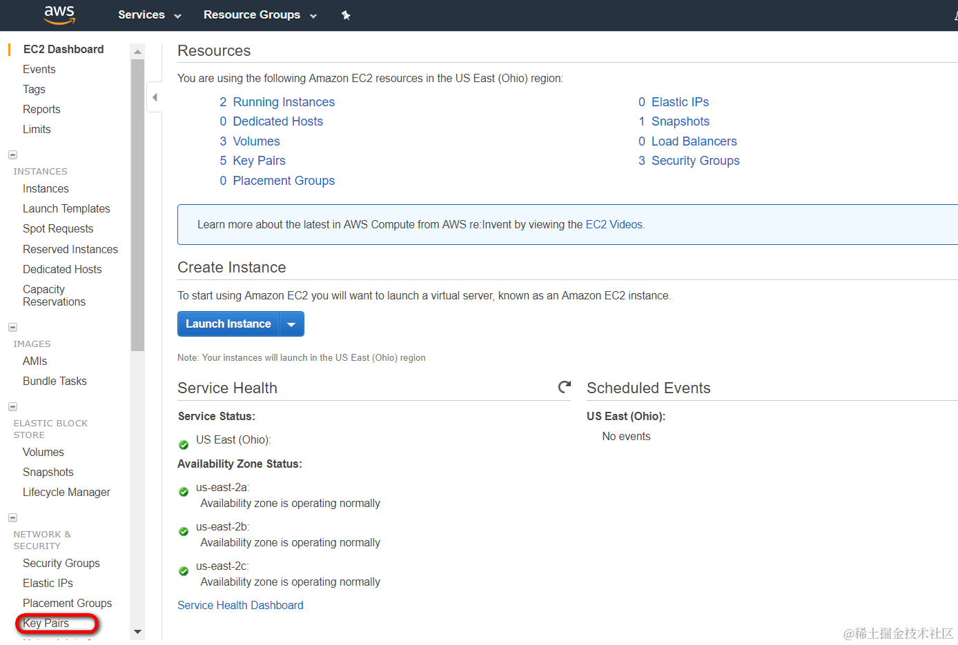 控制台Network & security->Key Pairs: