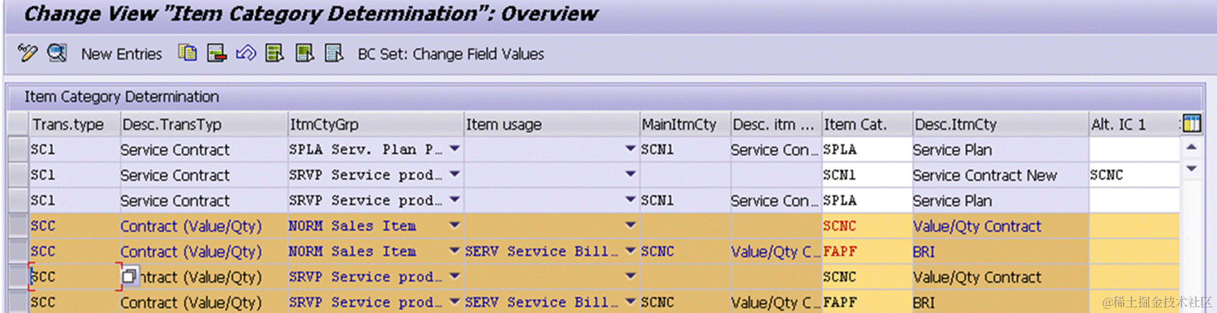 - 在下面的SPRO里,找到SCC对应的item category group: