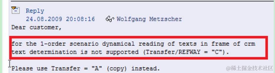 Subject: is transfer = C ( only read dynamically) not supported in one order scenario