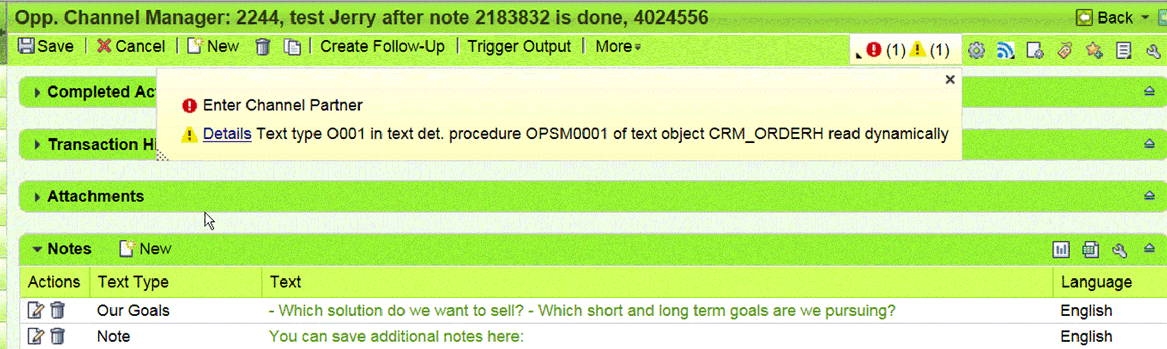 Thus end user will never see this error message, instead he could only see a “Note Saved” information in UI, actually it is not, and he could NOT see any note under the selected note type. This behavior is confusing.