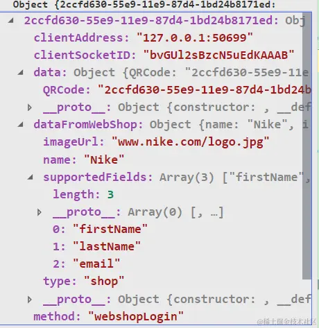 dataFromWebShop对象包含了该webshop的名称,和支持的Consent字段,上图表明Nike webshop支持firstName,lastName和email三个字段。