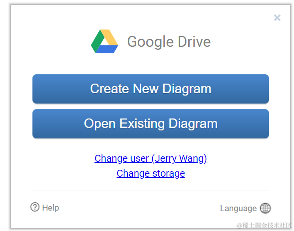 在线流程图绘制网站draw.io支持的三种存储介质 已注销 2021-04-25 104 阅读1分钟 分别是Google drive,微软的OneDrive和本地磁盘。 如果我点击Google Drive,会弹出授权页面: 需要使用Google账号登录一次进行授权: 之后点击Open Existing Diagram就能打开以前开发好的存储在Google Drive上的流程图了: 要获取更多Jerry的原创文章,请关注公众号"汪子熙":