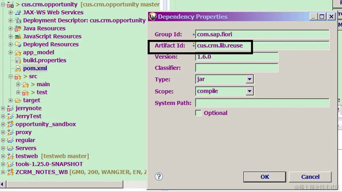 然后修改opp project的pom.xml: