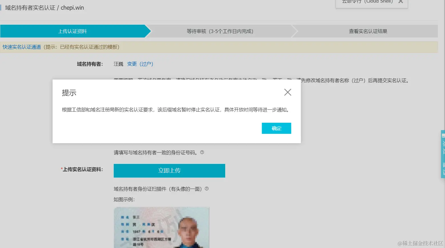 阿里云的很多域名没有办法进行实名认证了吗 已注销 2021-04-25 196 阅读1分钟 今天花了钱买了一个chepi.win的域名,发现状态为“未实名认证”。 发现了这个通知: 根据工信部和域名注册局新的实名认证要求,该后缀域名暂时停止实名认证,具体开放时间等待进一步通知。 是不是这钱打水漂了? 要获取更多Jerry的原创文章,请关注公众号"汪子熙":