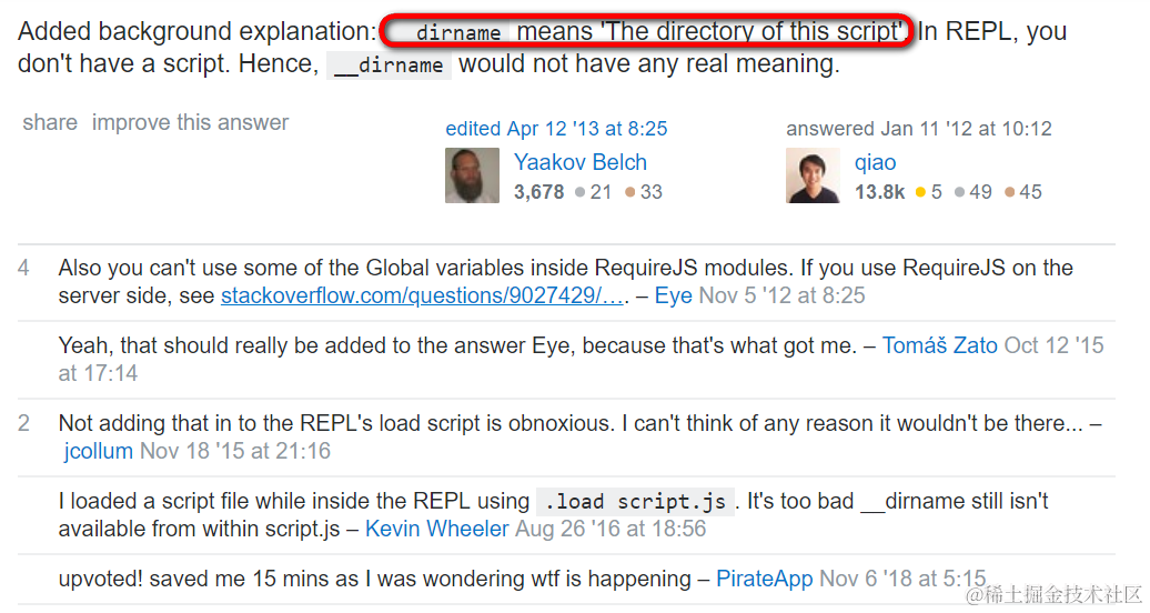 他抱怨在node的交互式运行环境REPL里,__dirname is not defined.