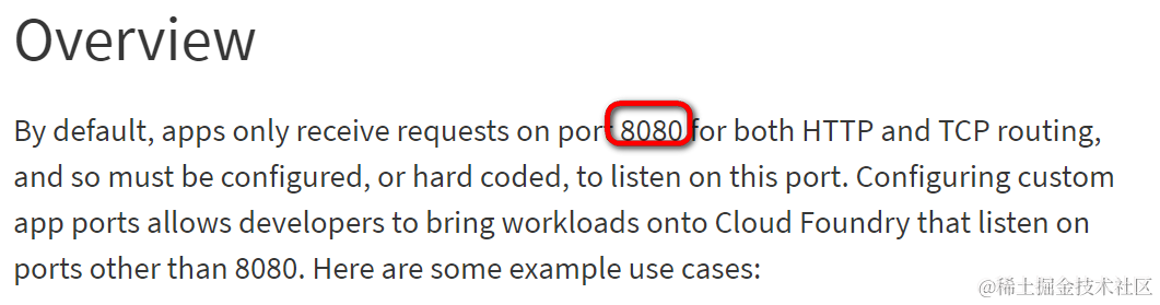 在CloudFoundry上,默认的HTTP和TCP路由端口为8080.
