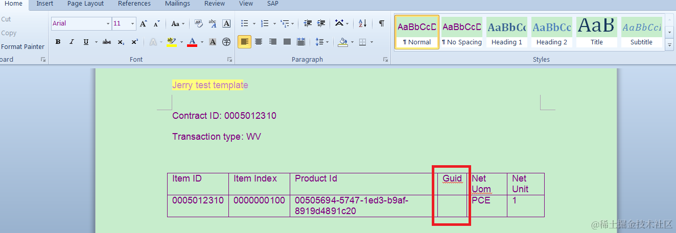 但是runtime时候,渲染出的word文档里,这个field是空的,没有被填充上期望的值。