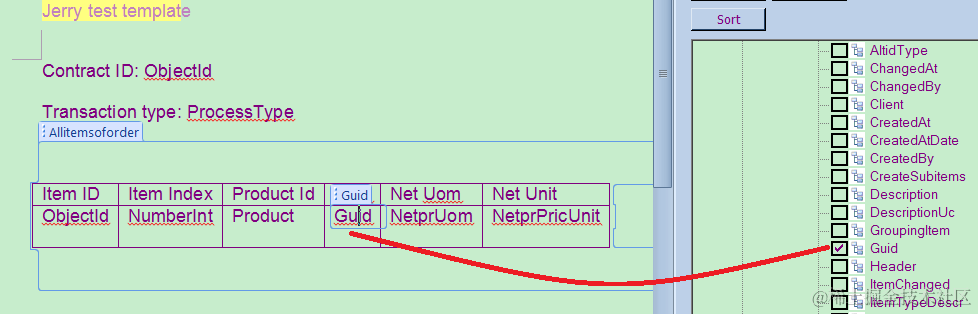 Design time时我把word document的guid field绑到了Genil model的guid field上: