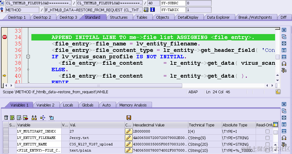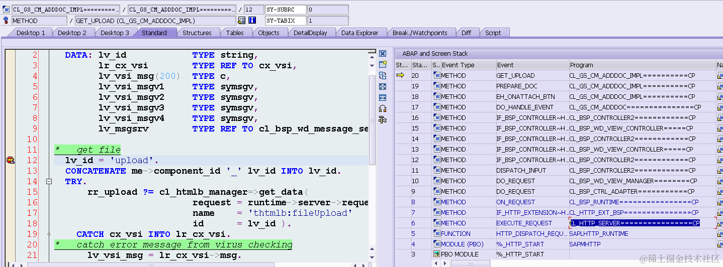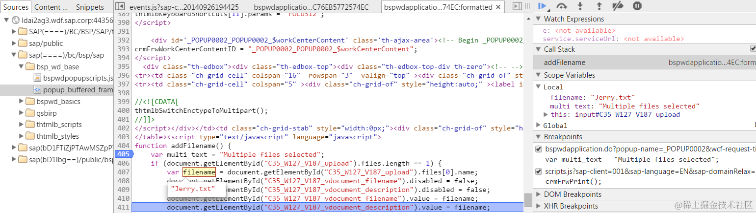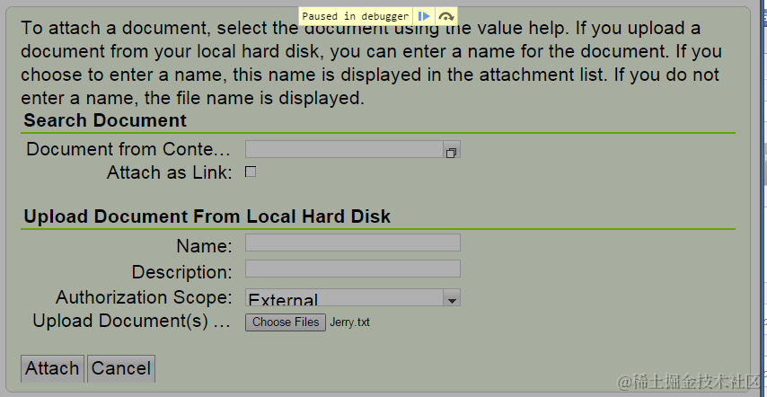 使用Chrome debug attachment upload page:从local laptop上选择一个file之后,断点触发: