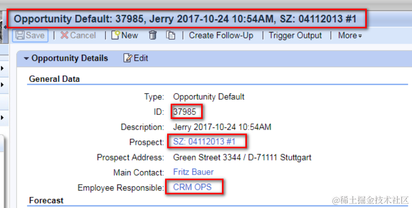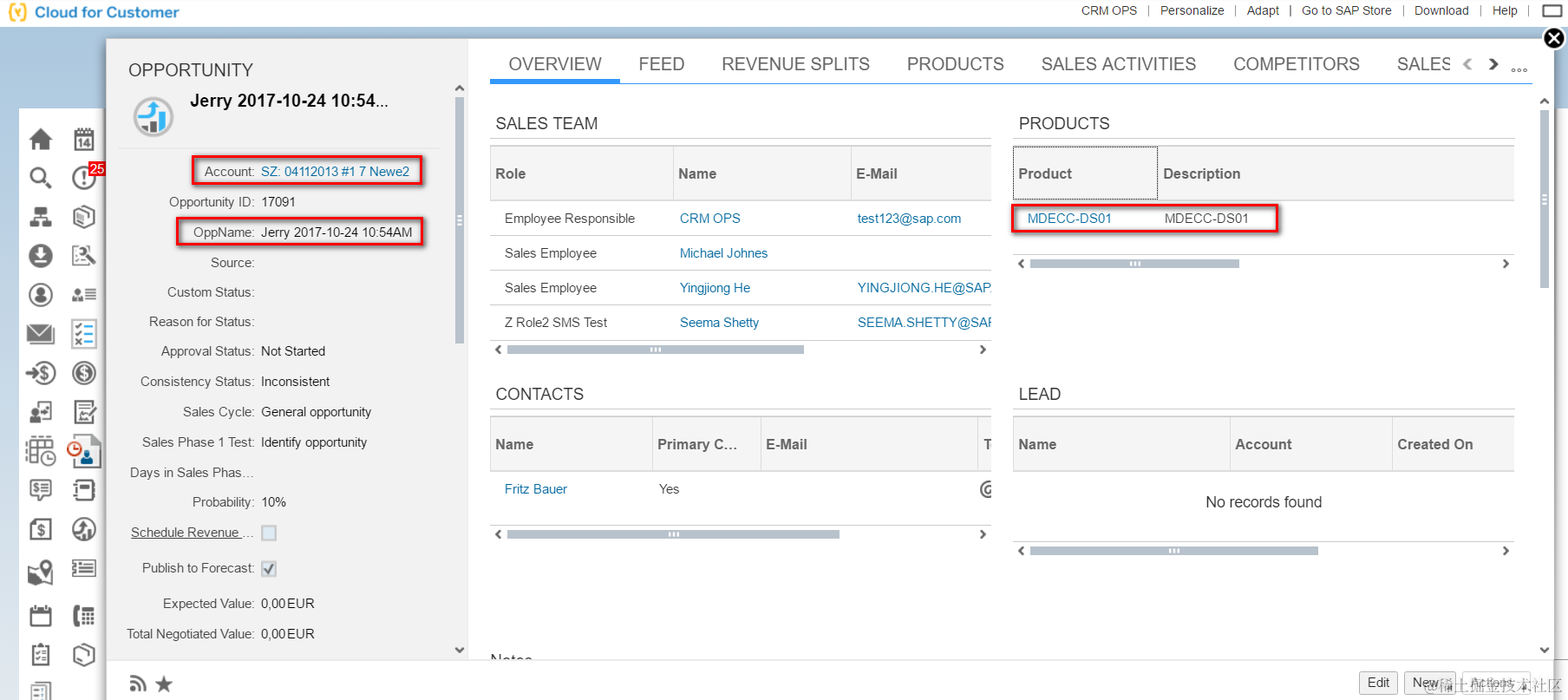 SAP CRM和Cloud for Customer的数据同步一例 已注销 2021-04-25 58 阅读1分钟 CRM上我在WebUI里创建了一个opportunity: ID为37985,包含了1个product: 通过PI导到C4C: CRM system里的opp ID在C4C里存在external ID field里: 要获取更多Jerry的原创文章,请关注公众号"汪子熙":