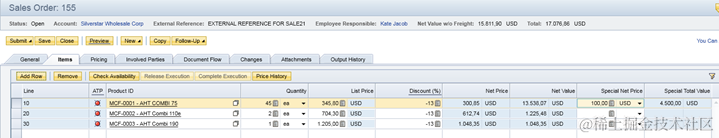 Special Total Value = Quantity * Special Net Price, in the example above = 45 * 100 = 4500 USD.