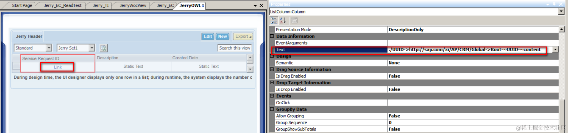 (1) there is one field in result list rendered as hyperlink, bound to BO uuid field