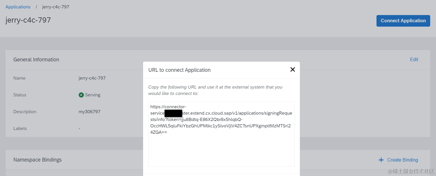 到Kyma控制台的应用里,点击Connect Application,就得到了需要维护到C4C里的url: