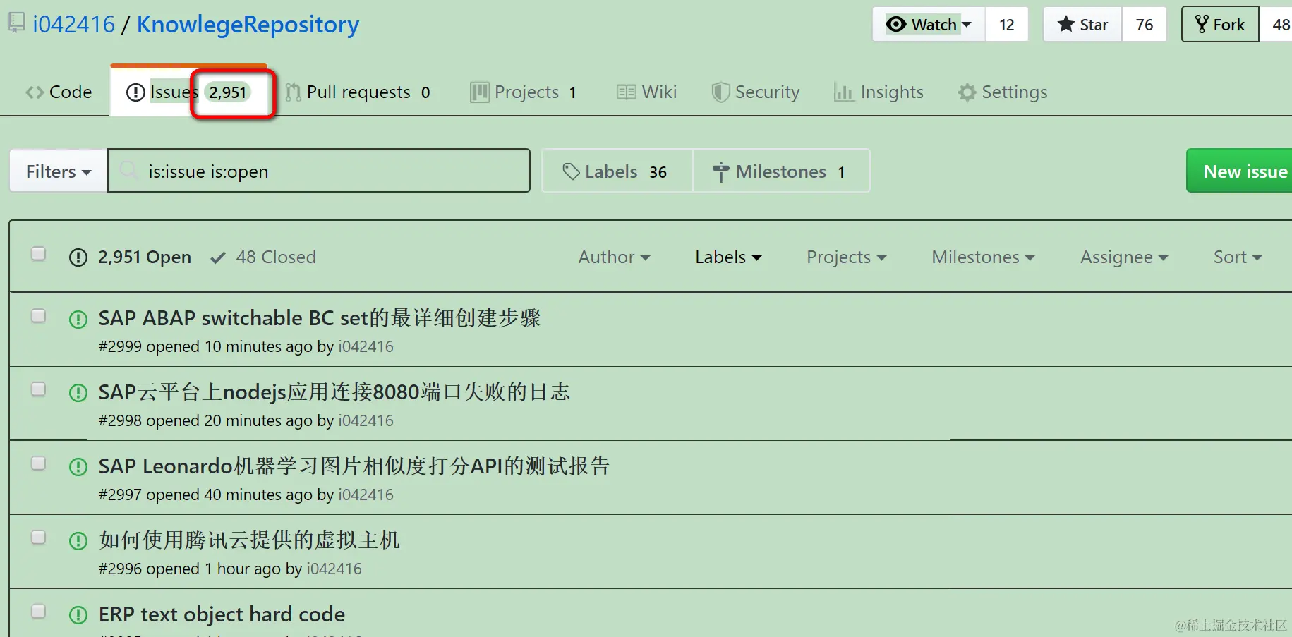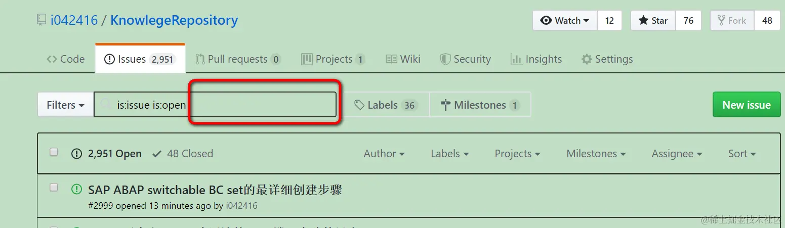Jerry有一个github仓库,专门用来存放自己的知识管理,通过一条条的issue来记录具体的知识点: