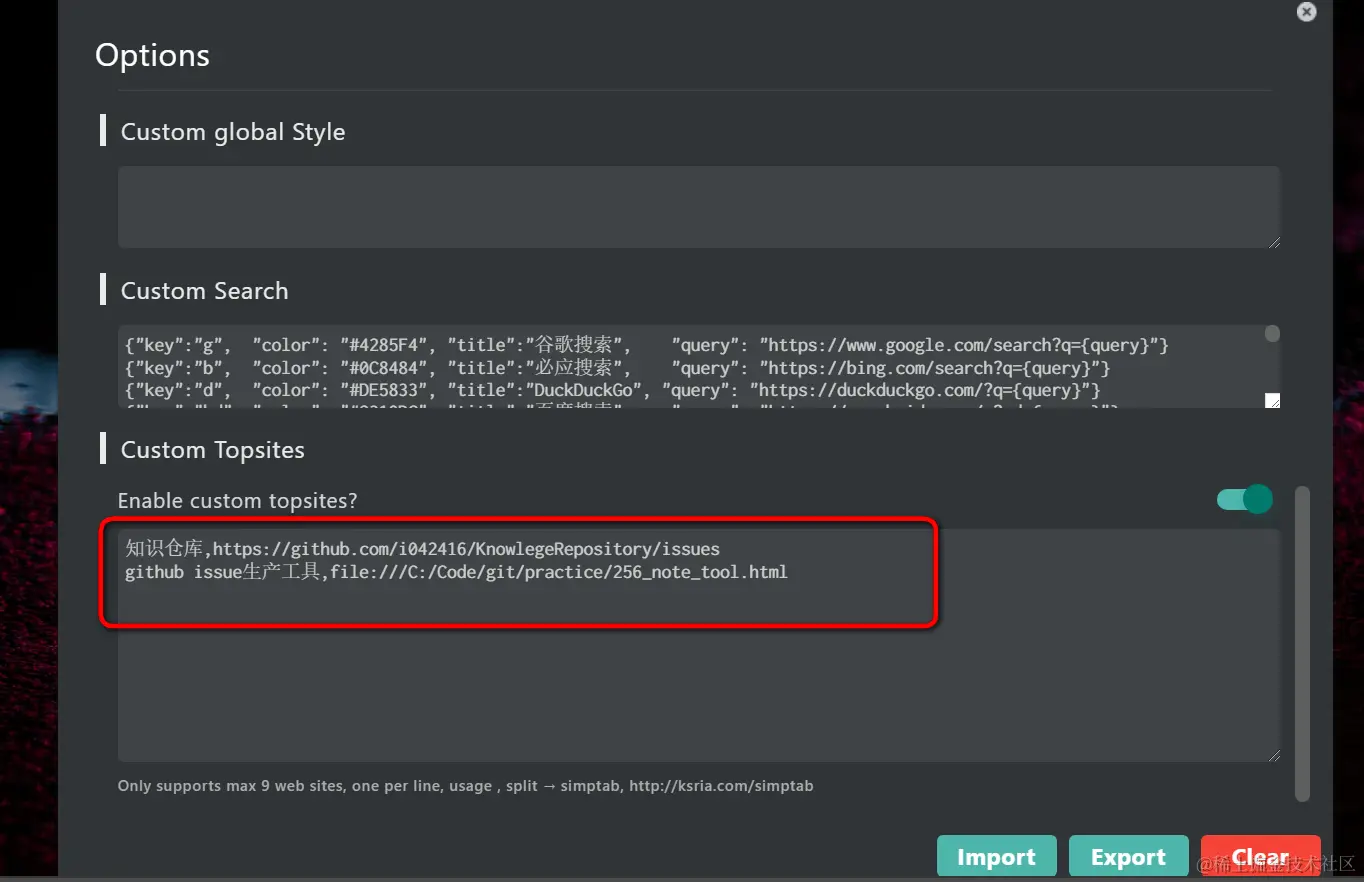 自定义最常用的website是我苦苦找寻了很长时间的亮点功能: