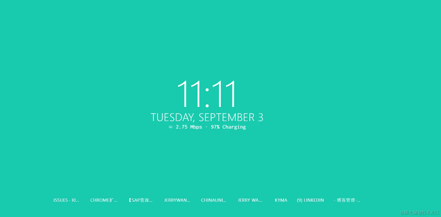 进入简洁模式,只显示电源电量和时间,背景是护眼的豆沙绿: