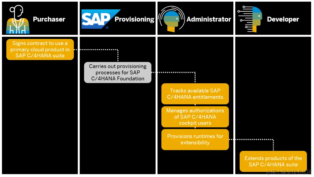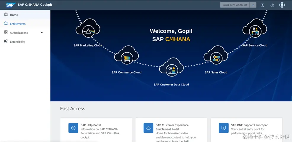 C/4HANA cockpit的Administrator登录cockpit,进行授权管理,分配用户权限,创建Extensibility运行时等工作。