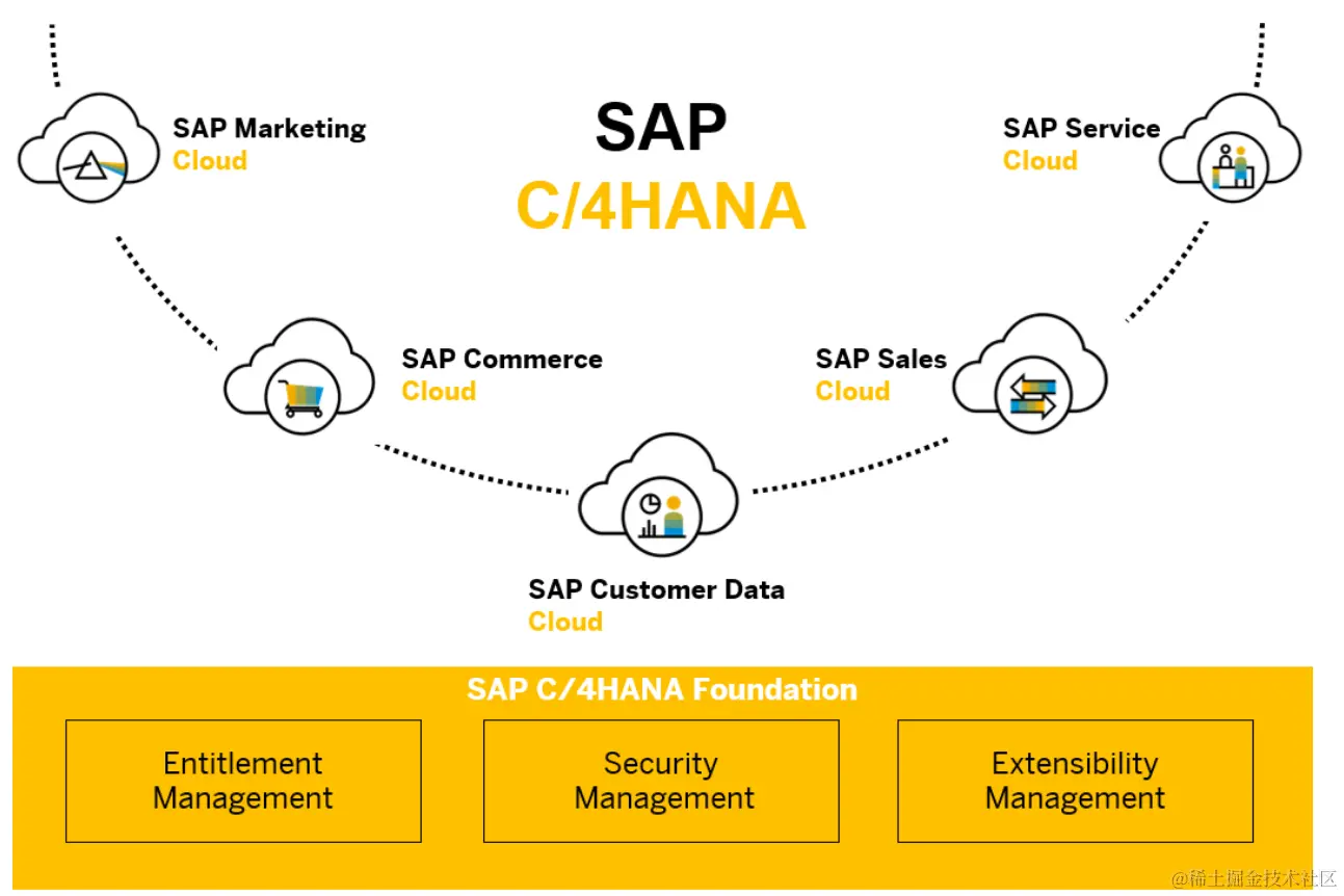SAP C/4HANA的从业者都知道,这五朵云里包含的产品,有的是SAP自研产品,比如后台基于ABAP Netweaver的Marketing Cloud和Cloud for Customer,有的则是近些年来SAP收购的技术栈和架构各异的产品。