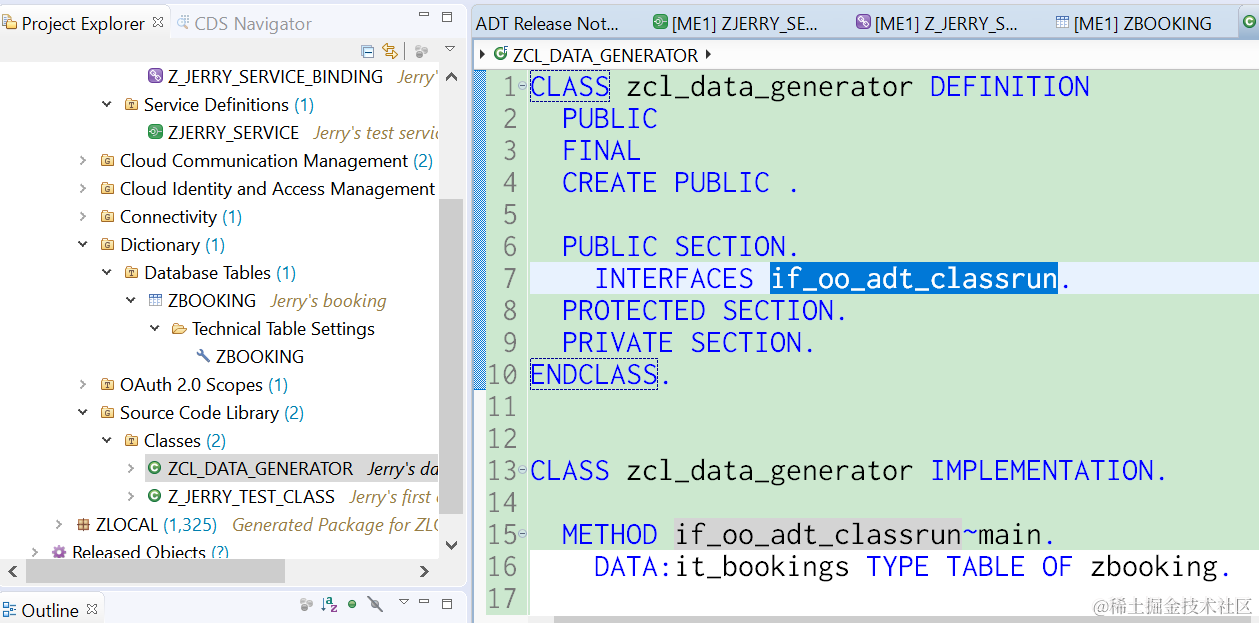下一步,创建一个ABAP类,以代码的方式往Z表里插入数据。