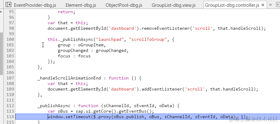 click group list in left launchpad 已注销 2021-04-25 85 阅读1分钟 sap.ushell.ui.launchpad.GroupListItem.prototype.onclick IntervalTrigger.js this.aResizeListeners DashboardContent…controller.js jQuery(’#dashboard’).animate({scrollTop:iY},500); 要获取更多Jerry的原创文章,请关注公众号"汪子熙":