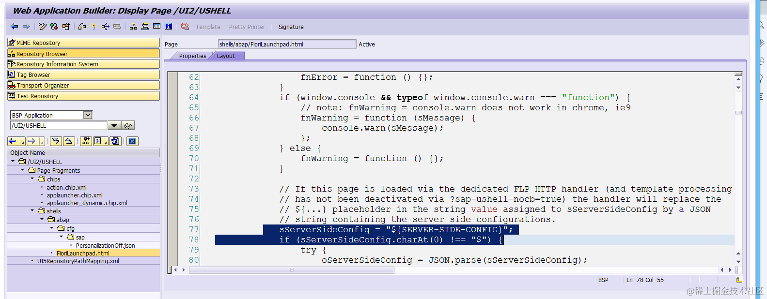 - FioriLaunchpad.html is stored in BSP application /UI2/USHELL,
