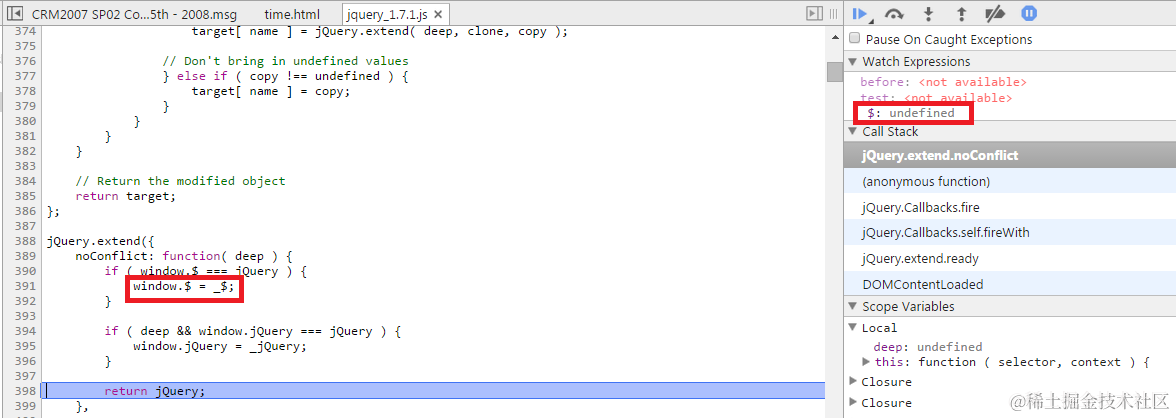 noConflict的实现仅仅是把全局变量中的$重置成undefined: