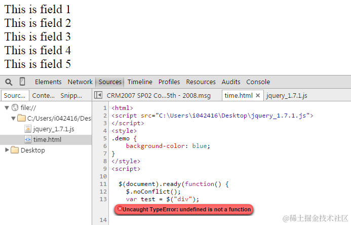 line 12使用noConflict将 的 控 制 权 交 还 给 其 他 第 三 方 l i b r a r y 之 后 , l i n e 13 再 使 用 的控制权交还给其他第三方library之后,line 13再使用 的控制权交还给其他第三方library之后,line13再使用(“div”)将报如下错误: