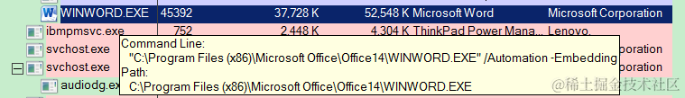 可以在process monitor里观察到activeX 启动的word application进程: