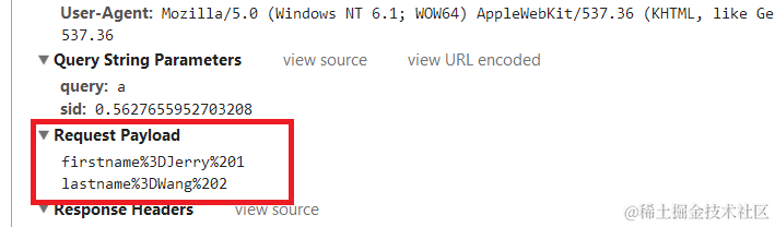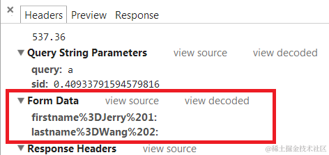 在Chrome里观察到的form data:
