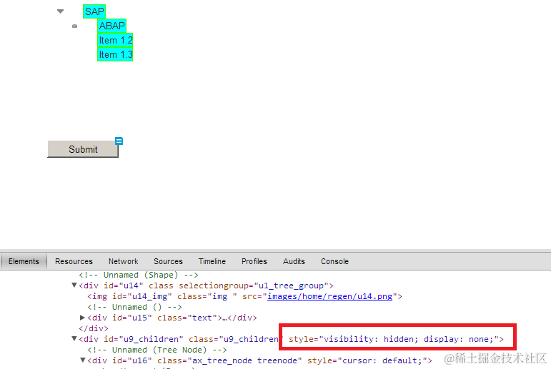 如何用html实现树形结构 已注销 2021-04-25 89 阅读1分钟 Created by Jerry Wang, last modified on Nov 11, 2014 runtime的时候,点击ABAP 节点前面的三角符号,ABAP 的子节点frontend 会被折叠起来,消失不见(动态添加hidden和display:none的属性) 再次点击会重新展开,(将display:none和hidden属性移除) 要获取更多Jerry的原创文章,请关注公众号"汪子熙":