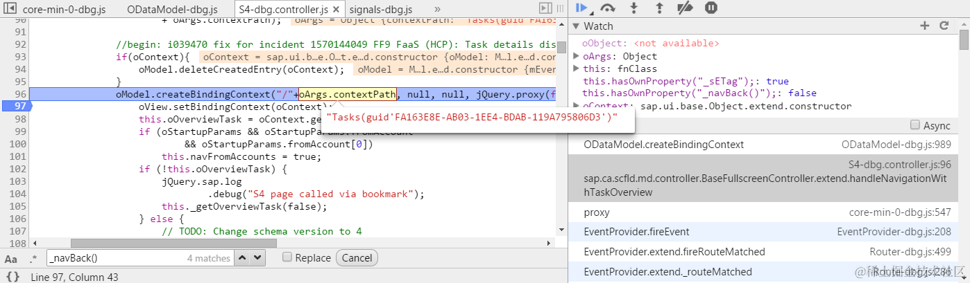 implementation of CreateBindingContext 已注销 2021-04-25 129 阅读1分钟 Created by Jerry Wang, last modified on Jul 29, 2015 创建bindingContext: 因为传入的oContext为空,所以oData肯定解析不出来。 执行loadData重新从后台加载数据: oData返回: 调用createBindingContext 传入的callback对新的context进行处理: 要获取更多Jerry的原创文章,请关注公众号"汪子熙":