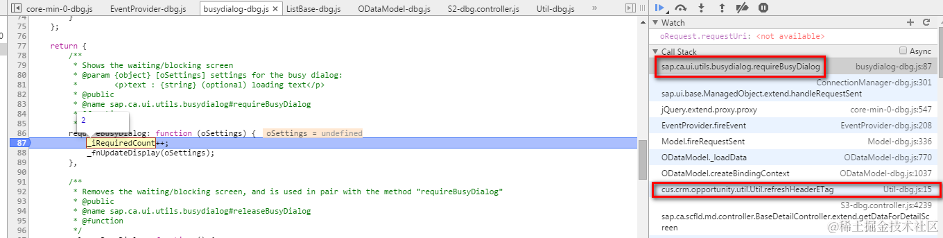 2. OpportunityAttachment data is requested. ConnectionManager calls another requireBusyDialog, iRequiredCount changed from 1 tp 2: