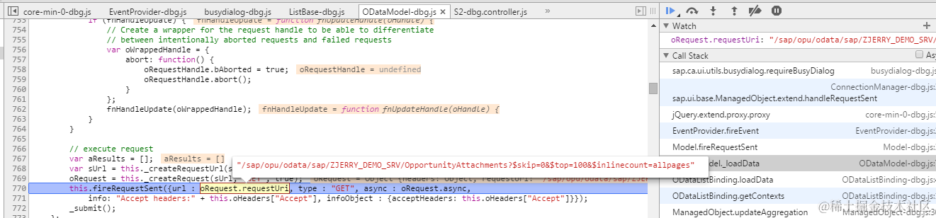 1. The bindAggregation in S2.controller.js will trigger the Odata request sent to backend: