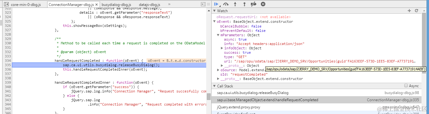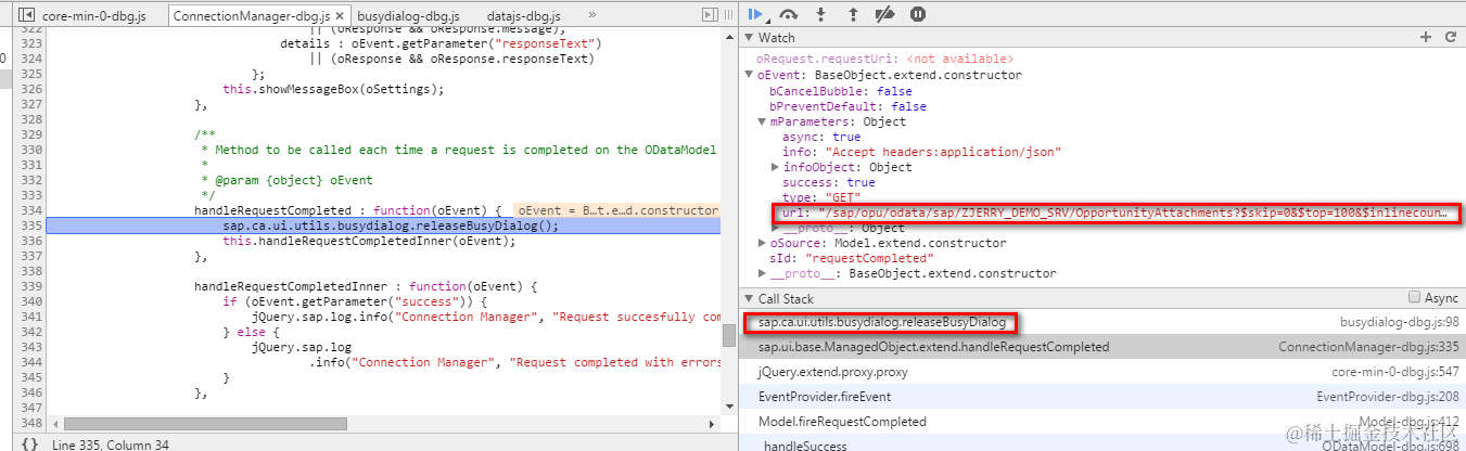4. At this time, the response of request in step1 has been returned to frontend, ConnectionManager calls releaseBusyDialog: