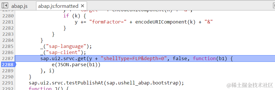 重新launch UI后断点触发, 发现请求在line2287通过utility method get发起,回调的处理函数在line2288: