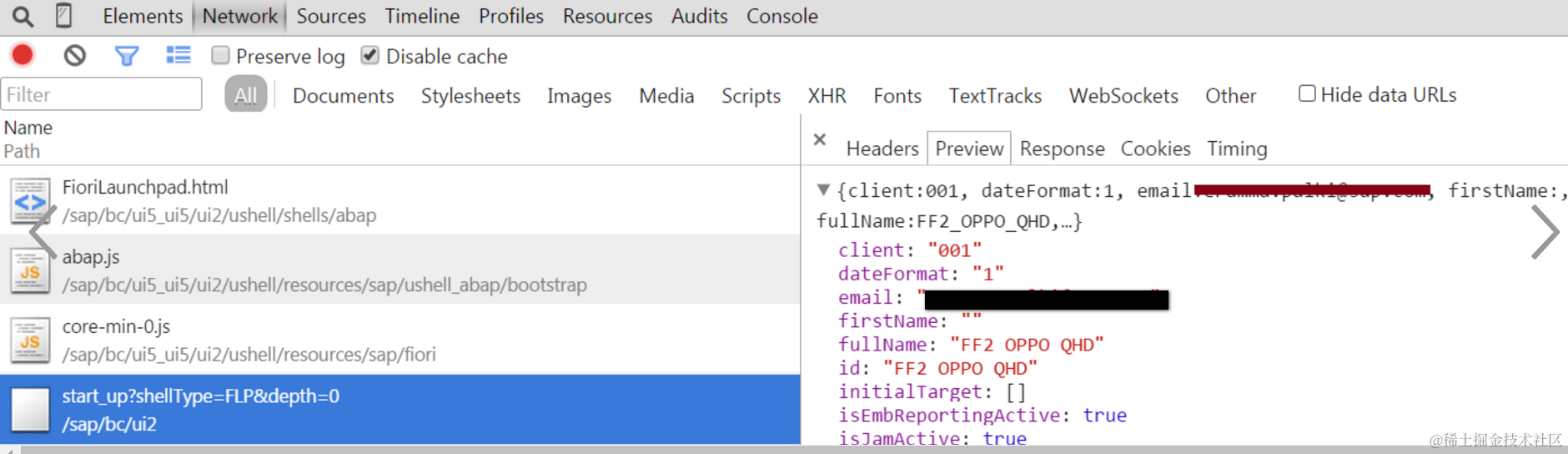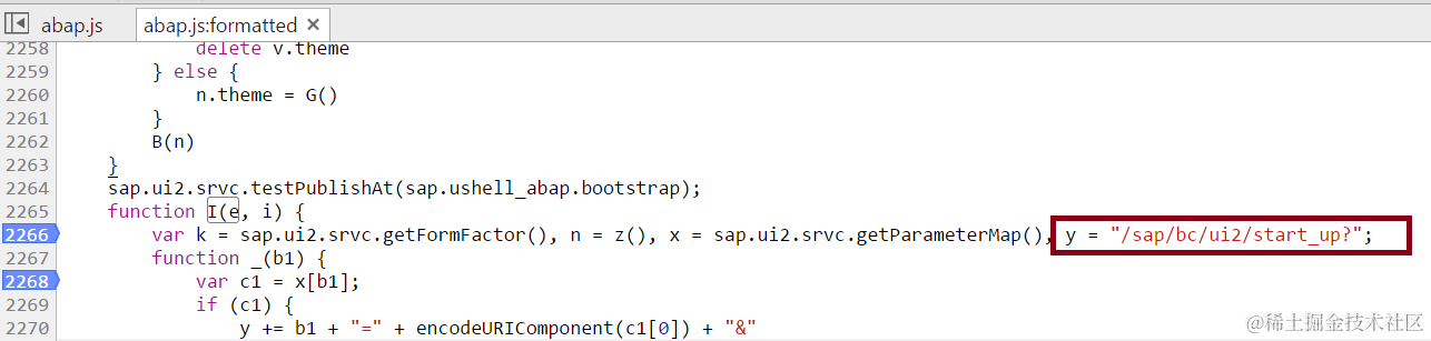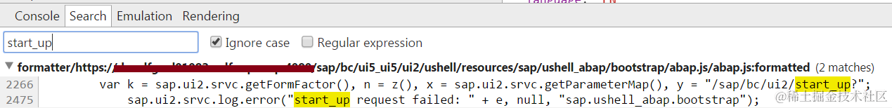通过search功能定位到发起start_up web 请求的具体js文件为abap.js, 完整路径如下: