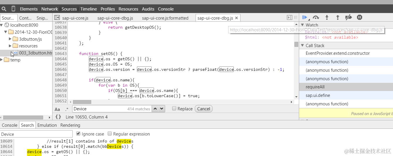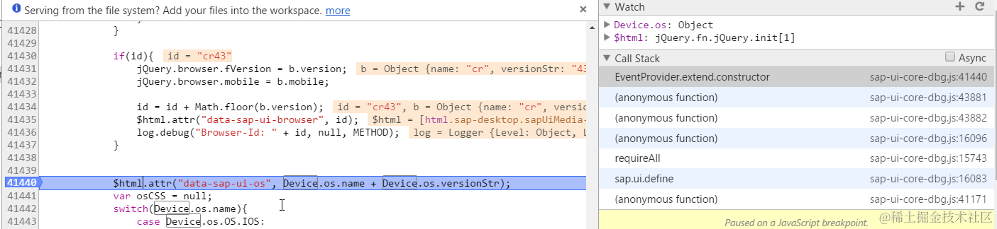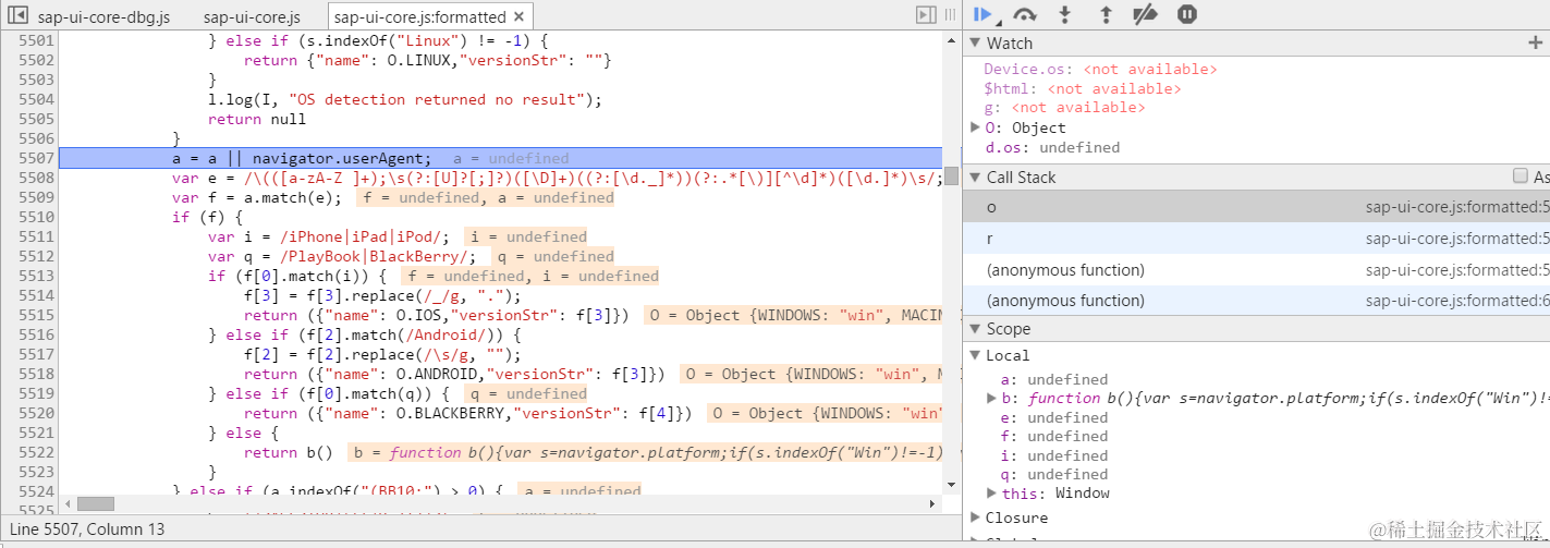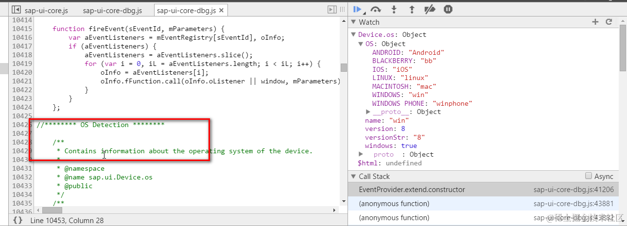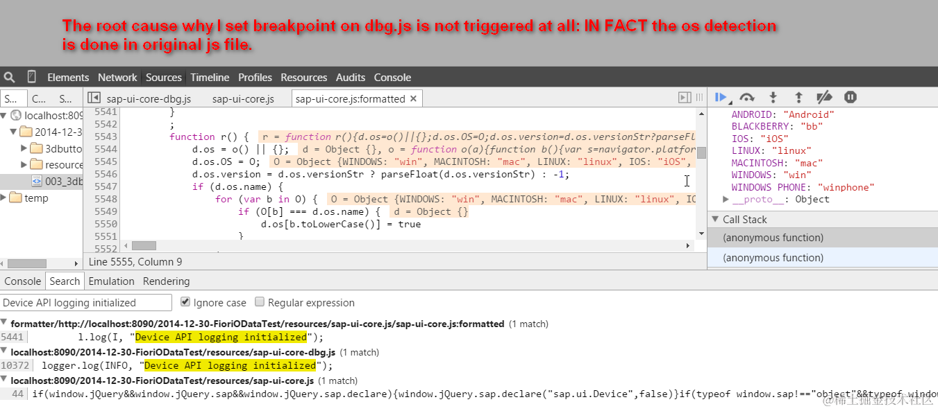 这是因为OS type的检测是在sap-ui-core.js file内触发的: