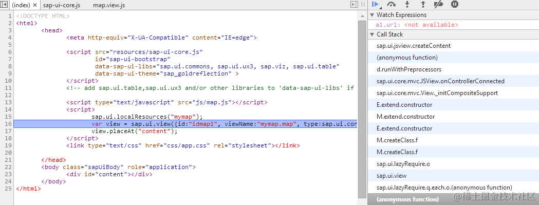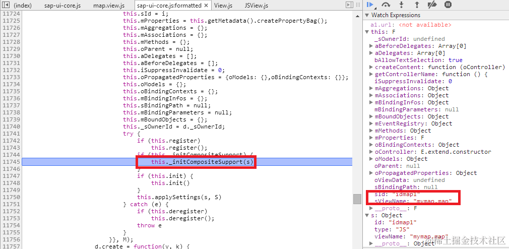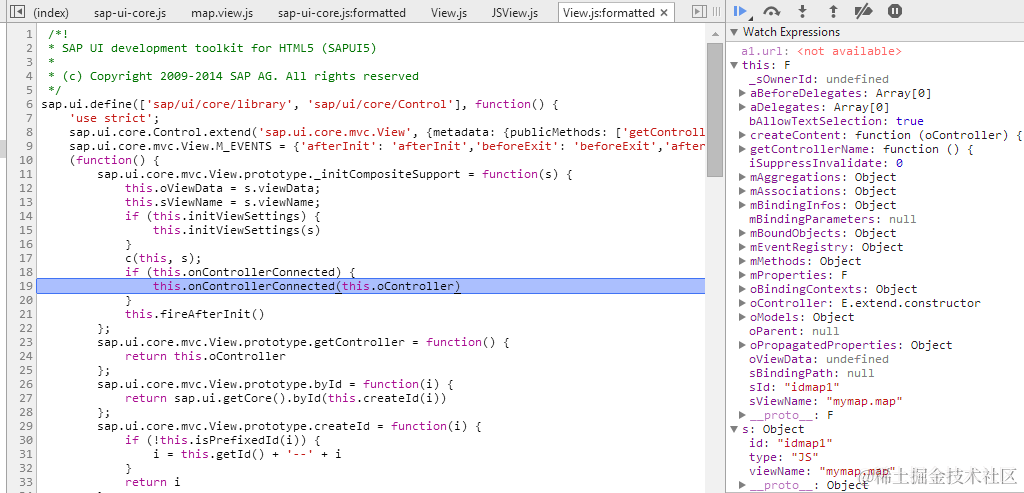 Callstack2: this指向JS view,this.oController指向对应的controller instance: