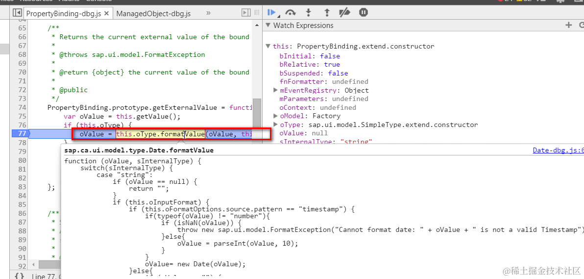 如果xml view里某个control维护了binding path,但是runtime时field显示为空,则可debug这个js file里的getExternalValue。