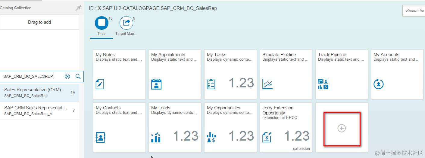 - launch Fiori launchpad designer, search catalog SAP_CRM_BC_SALESREP and create a new tile: