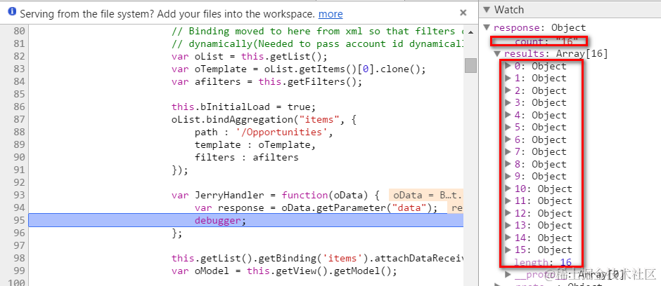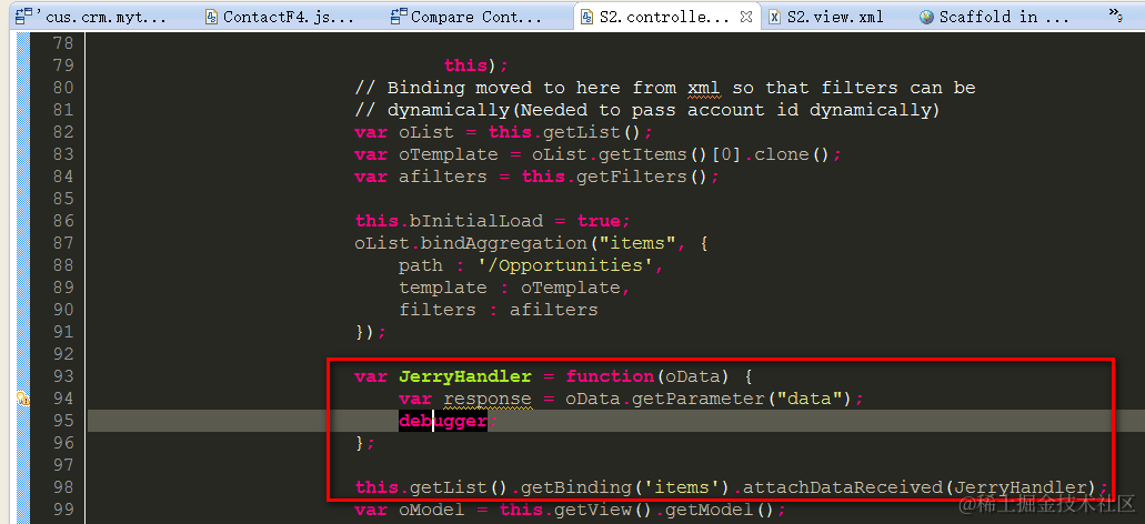when the response of request triggered by bindAggregation is returned, the corresponding handler JerryHandler will be called with response available in argument oData: