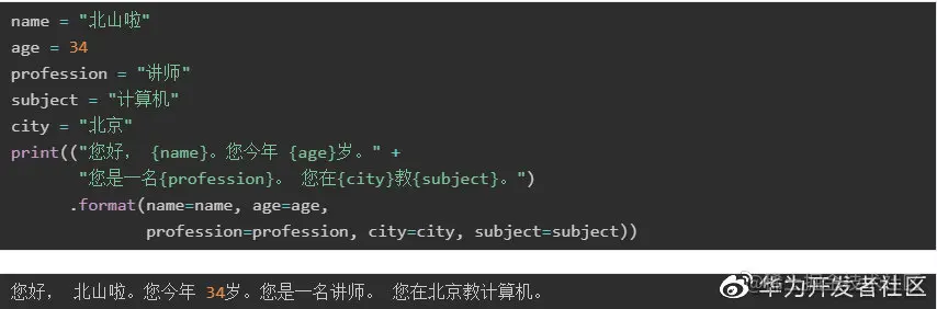 这种方式可以实现我们的目的,但它在可读性和性能上都不够优化。所以在Python中陆续提供了三种格式化字符串的方式。我们先来看第一种:使用占位符%。如果将上面的代码改成使用%占位符,它可以修改成如下: