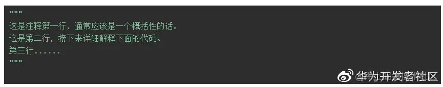 如果有多行的注释,可以使用三对双引号或者单引号将其包裹起来: