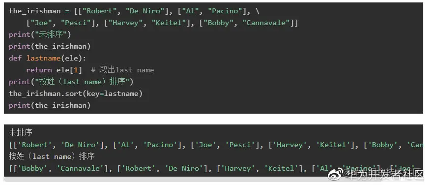 此时就需要用到sort()函数中的key参数了。通过key可以给它指定一个函数,这个函数来限制应该按照first name还是last name来排序: