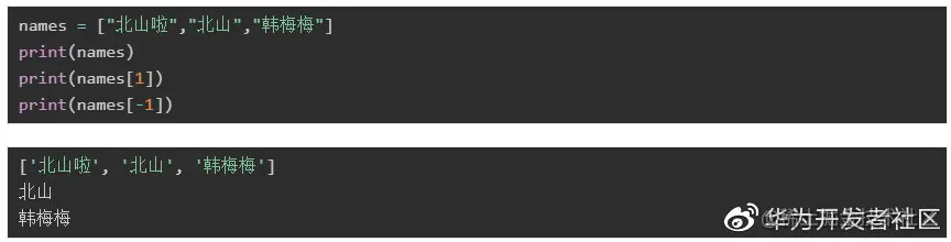 可以通过索引从中取出元素,例如names[1]将取出第二个数据(索引从0开始)。