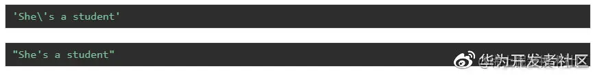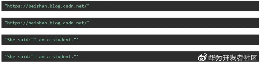 - 如果字符串中包含单引号,则使用双引号来包裹这个字符串,反之,如果字符串中包含双引号,则使用单引号来包裹这个字符串,例如: